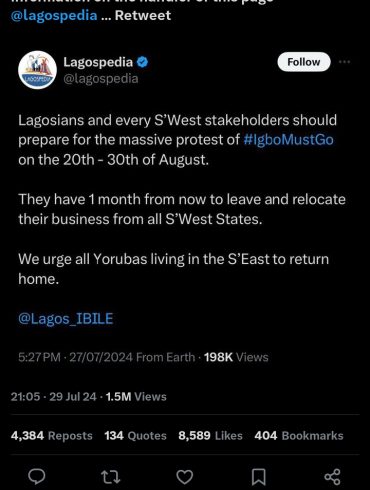 By Samuel Ogunsona A recent tweet on X formerly (Twitter), from a page, @lagospedia, has sparked a lot of controversies...