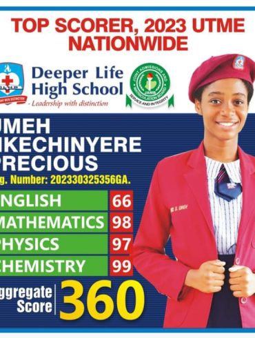 The top scorer in the 2023 Unified Tertiary Matriculation Examinations with a cumulative mark of 360, is a student of...