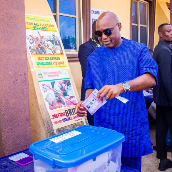 Ekiti State Governor, Mr. Biodun Abayomi Oyebanji, fulfilled his civic duty by casting his vote at Unit 03, Oyebanji Compound...