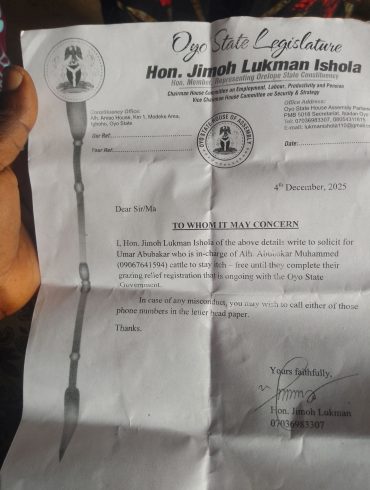 December 23, 2025By Ayinde Adeleke A resident of Oyo State, Ayoade Ojeniyi, has accused a member of the Oyo State...