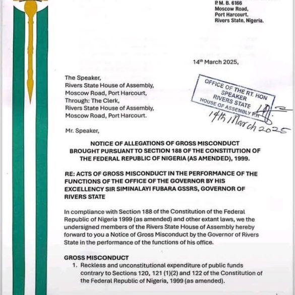 March 17, 2025 By Ayinde Adeleke The Rivers State House of Assembly has initiated impeachment proceedings against Governor Siminalayi Fubara...