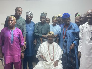 The extended family members, cousins, and relations of the Olubadan-designate, Oba Rashidi Adewolu Ladoja, under the banner of the Real Born Community Association of SWI, Isale-Osi Area of Ibadan, on Tuesday paid a courtesy visit to their patron and elder at his palace on Ondo Road, Bodija Housing Estate of the Oyo State Housing Corporation.